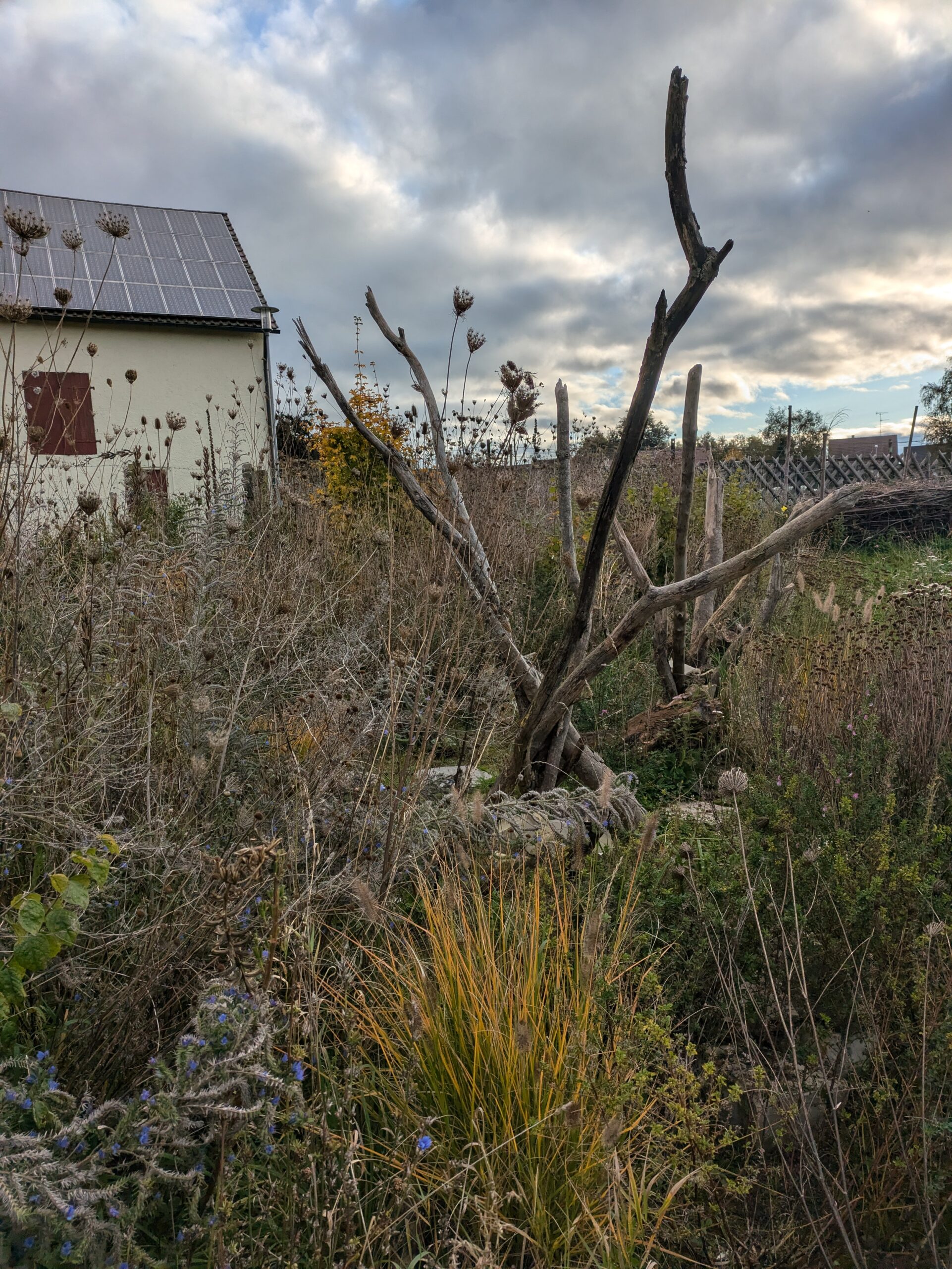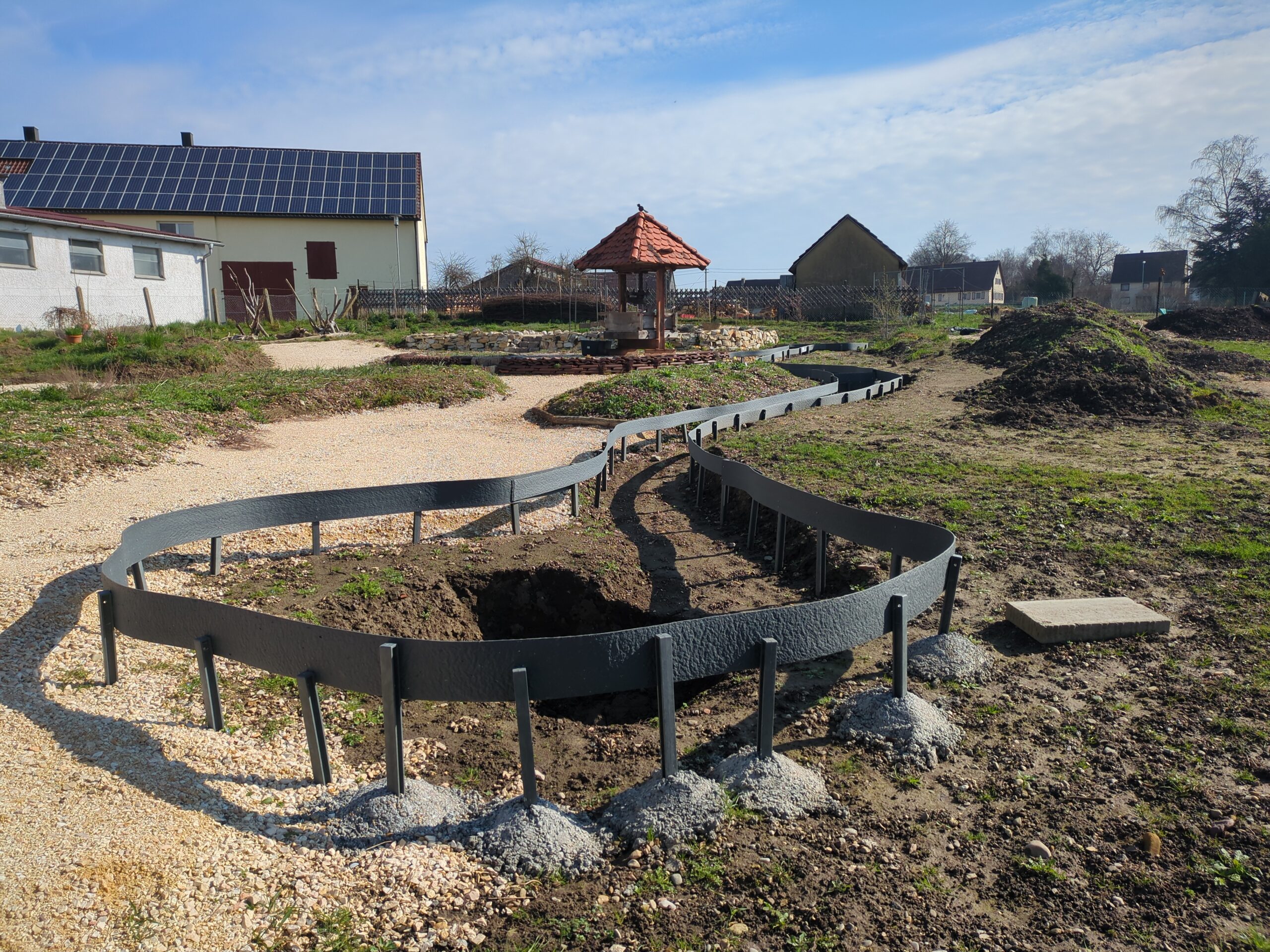 Neugestaltung von rund 900m² Wiesenfläche zu einem vielfältig strukturierten Privatgarten mit unterschiedlichsten Lebensräumen. Entstanden ist ein naturnahes Gartenparadies, von kargen Trockenmauern und Eidechsenburgen über Totholzbereiche und sandigen Zonen für Wildbienen bis hin zu farbenfrohen Blumenwiesen und Staudenbeeten und einem natürlich gestalteten, wasserführenden Bachlauf.